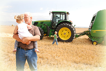 Frank Hinckley, Co-Owner of Hinckley-James Inc., is pictured above with his grandchildren, 6th generation Hinckley's, learning the trade. Frank and his employees have put in long days, sometimes starting at 3am and at times around the clock to 2am again to support families in Northern Wyoming. They have a quality product because of their hard work. Please check out the photo gallery to see the Certified Weed Free Straw that you can purchase from Hinckley-James Inc. |